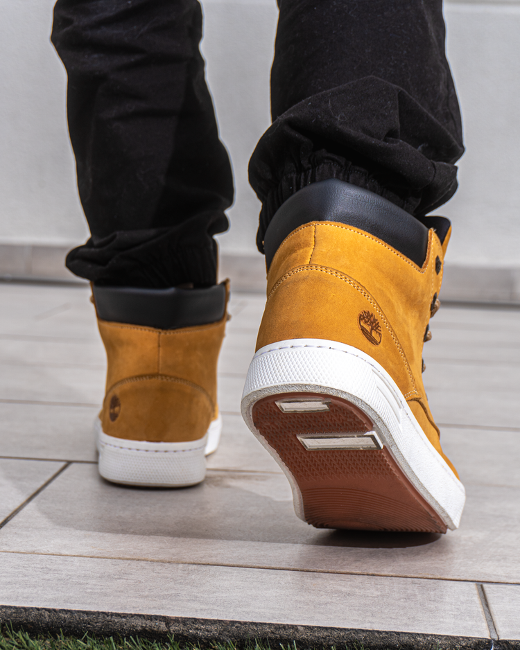 Botín Timberland Maple Grove amarillos nobuk con suela blanca ecológica y diseño urbano para hombre y mujer