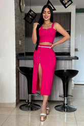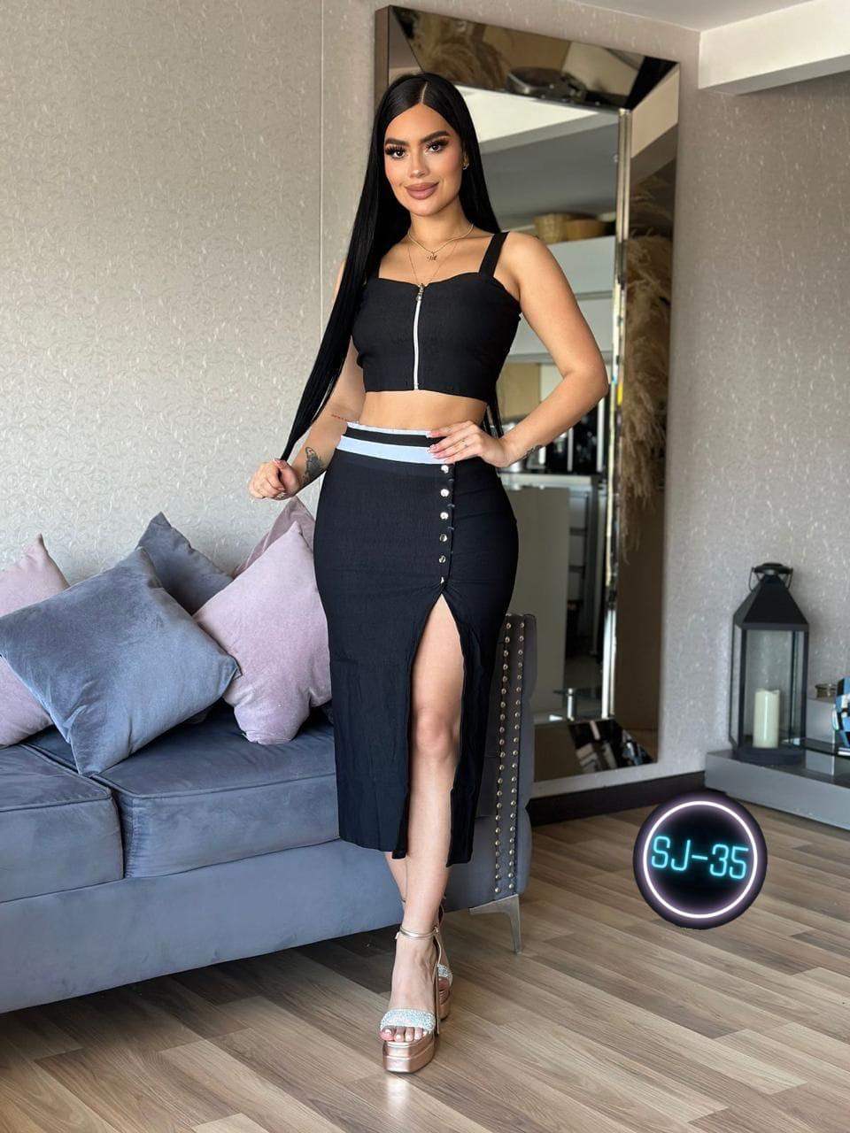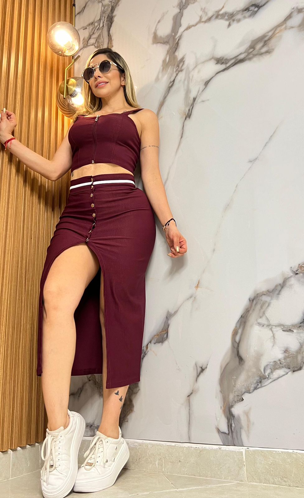 Resalta tu figura con estilo con el Conjunto Falda y Blusa Ref. 2132, confeccionado en bengalina licrada, una tela reconocida por su elasticidad, suavidad y ajuste perfecto. Ideal para ocasiones casuales, salidas o eventos donde quieras lucir moderna y sofisticada sin sacrificar la comodidad.