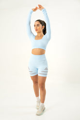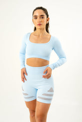 Conjunto Top Manga Larga + Short Push Up Scrunch - Sin Costuras y Dry-Fit